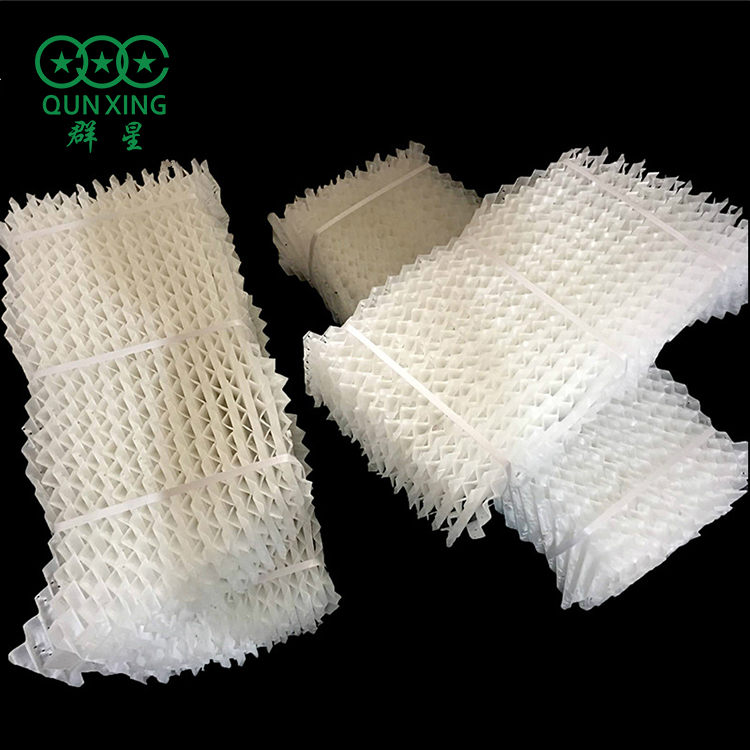 梯形冷卻塔填料:臺(tái)階梯形斜波填料由水利電力院冷卻水研究所設(shè)計(jì),本填料片型橫斷面呈梯形斜波,提高了填料中的汽水撓動(dòng)和減緩水膜下濺速度,在填料中延長(zhǎng)了熱交換時(shí)間,提高了散熱性能。具有較好的綜合性能。通道面積大,粘接牢固,整體組裝鋼度好,可廣泛用于工業(yè)冷卻塔,本廠目前生產(chǎn)聚氯乙烯(PVC),聚丙烯(PP)兩種材質(zhì)。